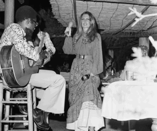 Bardot duke shijuar një natë në të famshmin Club 55 në Rivierën Franceze në vitin 1974.