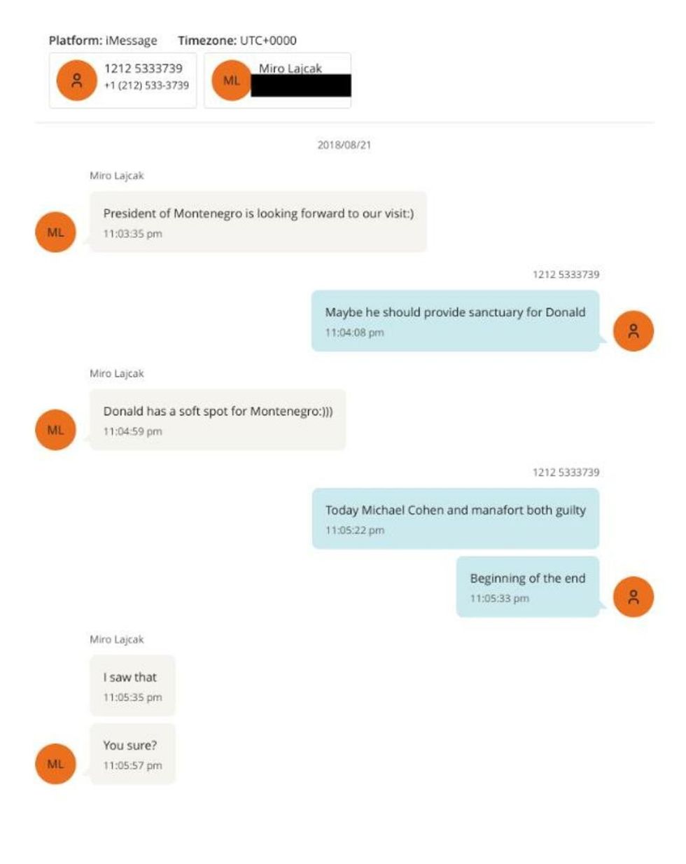 Më 21 gusht 2018, Lajçak i shkroi Epstein një mesazh: “Presidenti i Malit të Zi mezi pret vizitën tonë”.