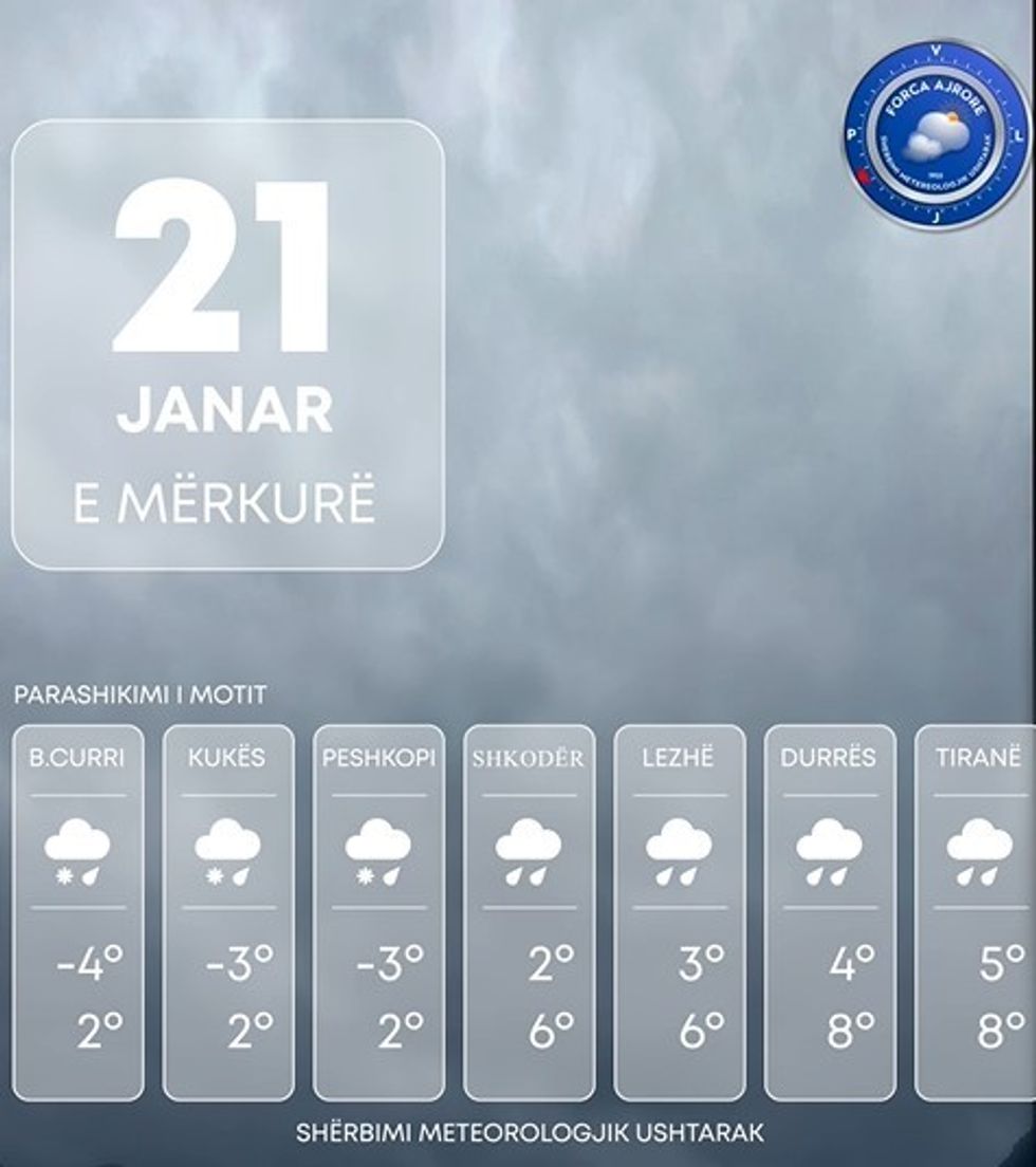 Temperaturat minimale do të lëvizin ndërmjet -8 deri -5°C, ndërkaq ato maksimale nga 1-4°C