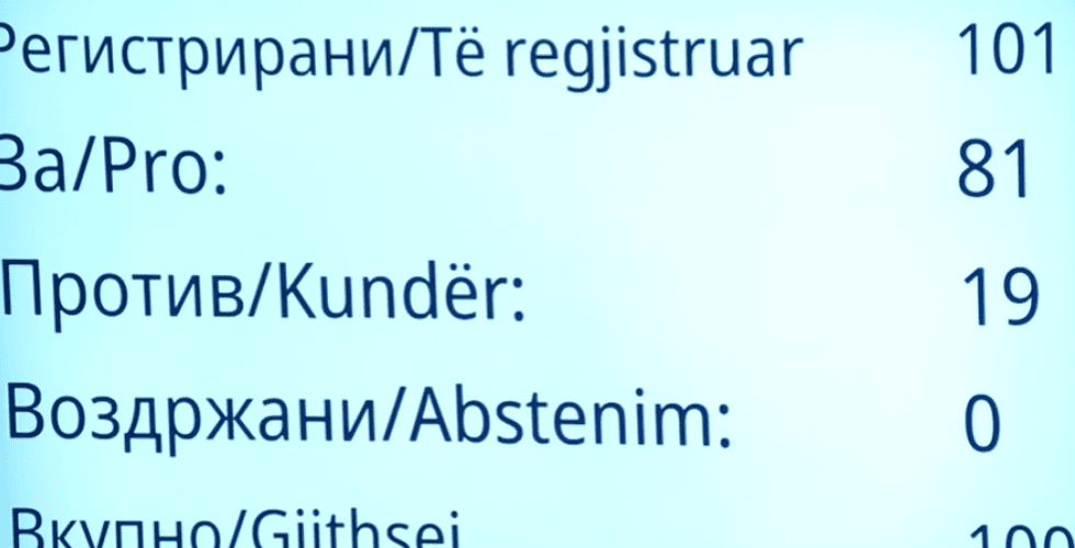 Pro votuan deputetët e OBRM-PDUKM-së, VLEN-it, ZNAM-it, "Të Majtës" dhe deputeti i pavarur tashmë, Ilir Demiri.