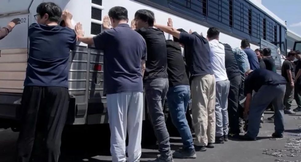 Gjatë bastisjes, punëtorët u detyruan të uleshin në dyshemenë e fabrikës ndërsa oficerët ua lidhën këmbët me pranga në skena që shkaktuan zemërim në Korenë e Jugut, transmeton Telegrafi.