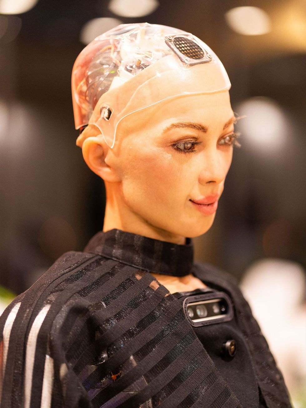 Fotografimi i Sofisë krijoi një përzierje të çuditshme njenjash. Fokusimi automatik i avancuar i kamerës time vazhdimisht kapte sytë e saj, dhe ajo ishte ndërtuar pikërisht për këtë lloj kontakti. Njerëzit shpesh shmangen nga objektivi; ajo jo. Lëkura e saj - e njohur si Fruber, një përzierje e patentuar dhe poroze e polimereve elastike që imitojnë mishin - ishte shtrirë mbi një strukturë plastike dhe titani, dhe nuk kishte asnjë shenjë ndrojtjeje. E, megjithatë, asnjë nga kimitë e zakonshme njerëzore nuk u ngacmuan. Emocioni i vetëm i vërtetë, në atë moment, vinte nga portokallia e thellë e murit prapa saj, që krijonte një sfond të mrekullueshëm.