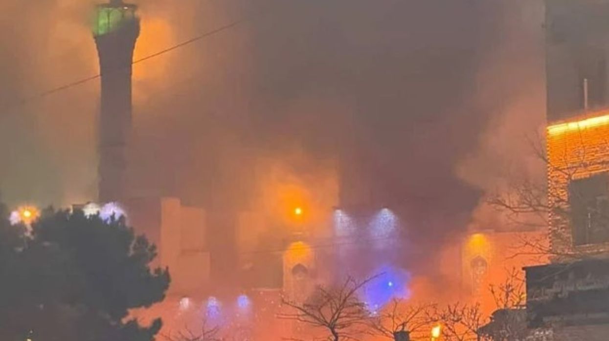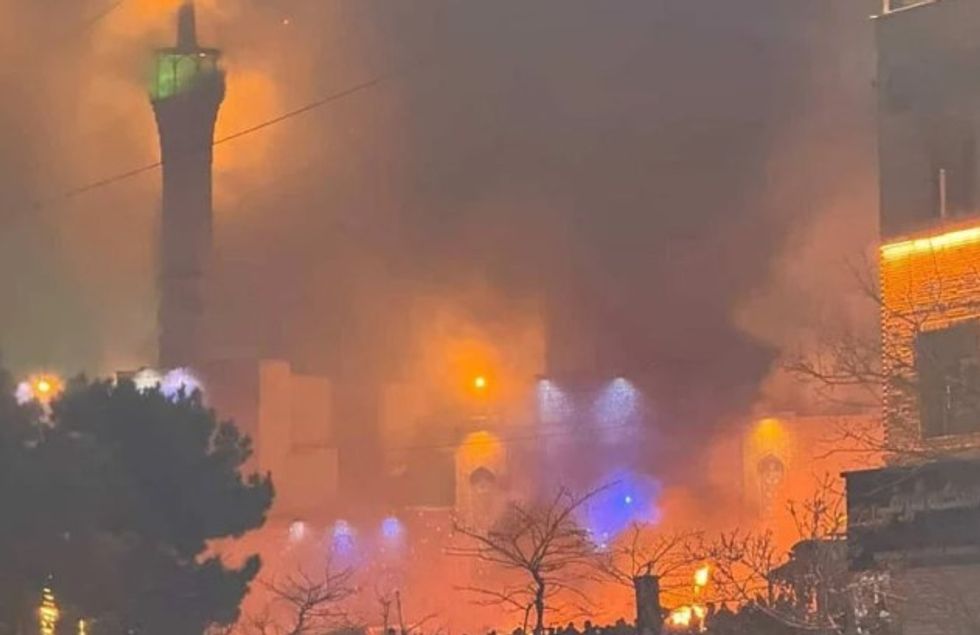 Mes vendeve qĂ« digjen Ă«shtĂ« edhe Xhamia Al-Rasul nĂ« veriperĂ«ndim tĂ« qytetit. NĂ« lagjen Saadat Abad, protestuesit brohorasin âVdekje Khameneiâ ndĂ«rsa ndĂ«rtesat pĂ«rreth digjen. NĂ« Narmak, ndĂ«rtesat banimi janĂ« nĂ« flakĂ«, dhe nĂ« sfond dĂ«gjohen tĂ« shtĂ«na dhe njerĂ«z qĂ« bĂ«rtasin.