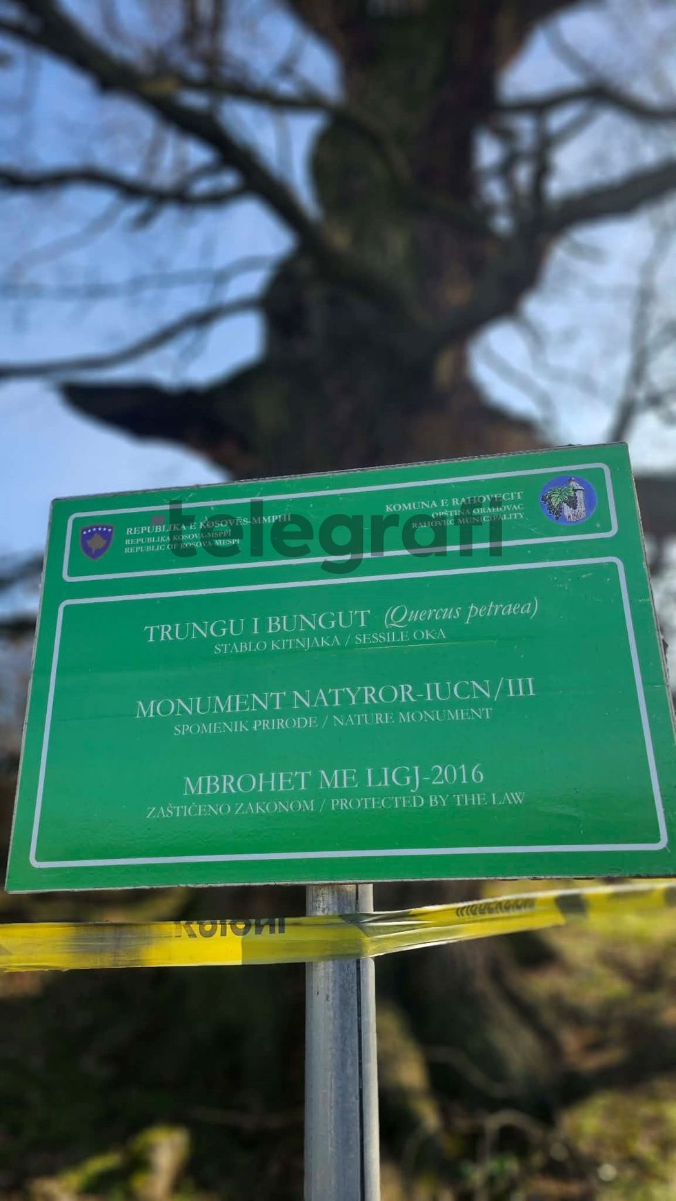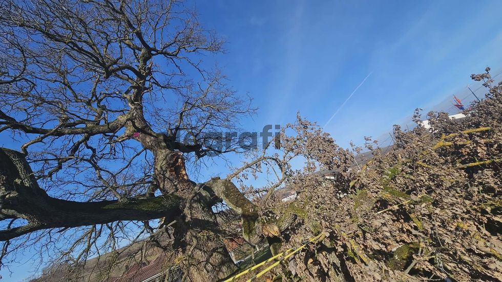 Ai thekson se një nga degët e lisit gjendet mbi telat e rrymës elektrike dhe ekziston rreziku që të shembet në çdo moment, duke shkaktuar dëme materiale dhe duke rrezikuar dhjetëra shtëpi të fshatit.