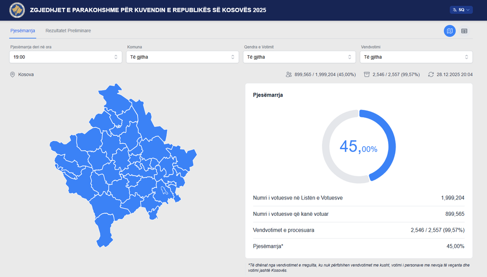 Në përqindje, kjo do të thotë se 45% e votuesve të regjistruar kanë marrë pjesë në procesin zgjedhor.