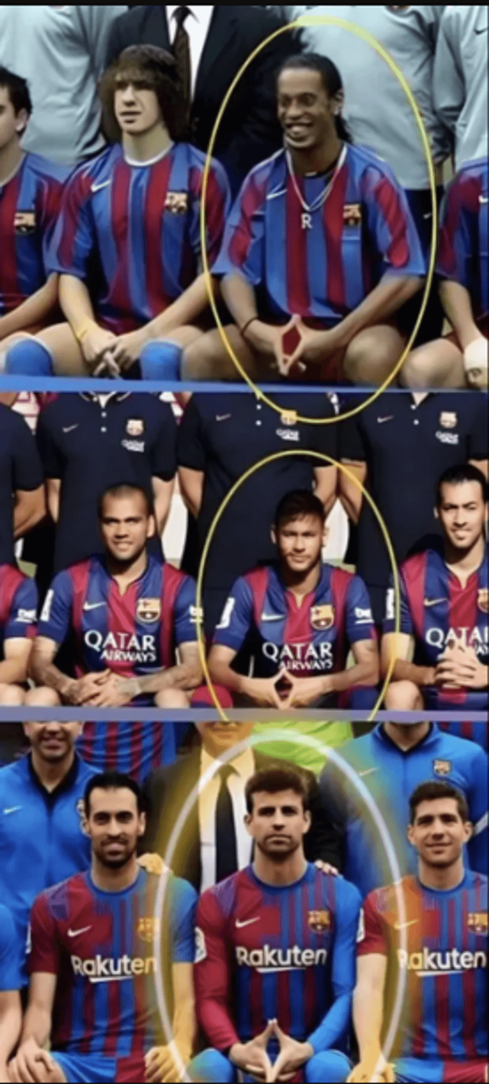 Një nga detajet që tërhoqi më shumë vëmendje ishte gjesti simbolik i bërë nga Raphinha me duar, duke ruajtur një “traditë” të njohur në klub. Më herët, të njëjtin gjest e kishin bërë edhe Ronaldinho, Neymar dhe Gerard Pique në fotografitë zyrtare të sezoneve të tyre.
