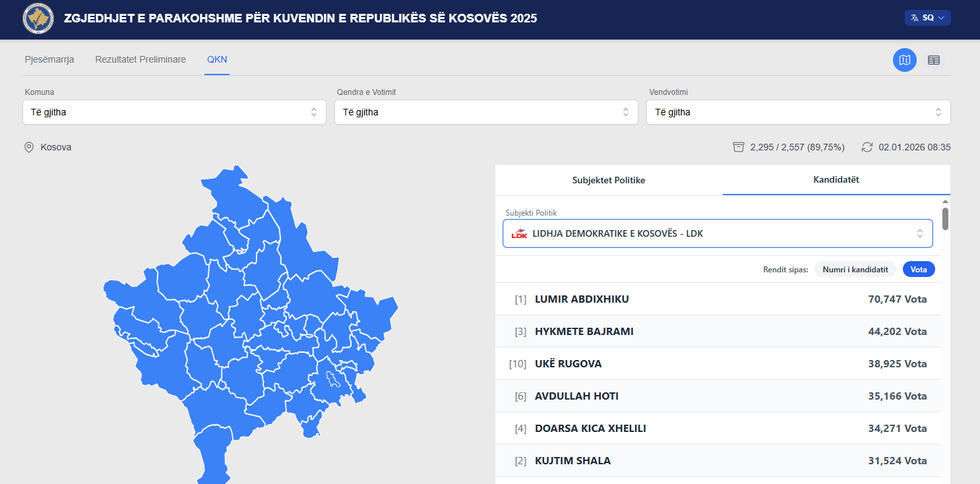 Ndërkohë, në Lidhjen Demokratike të Kosovës kryesimin e mban Lumir Abdixhiku me mbi 70 mijë vota.