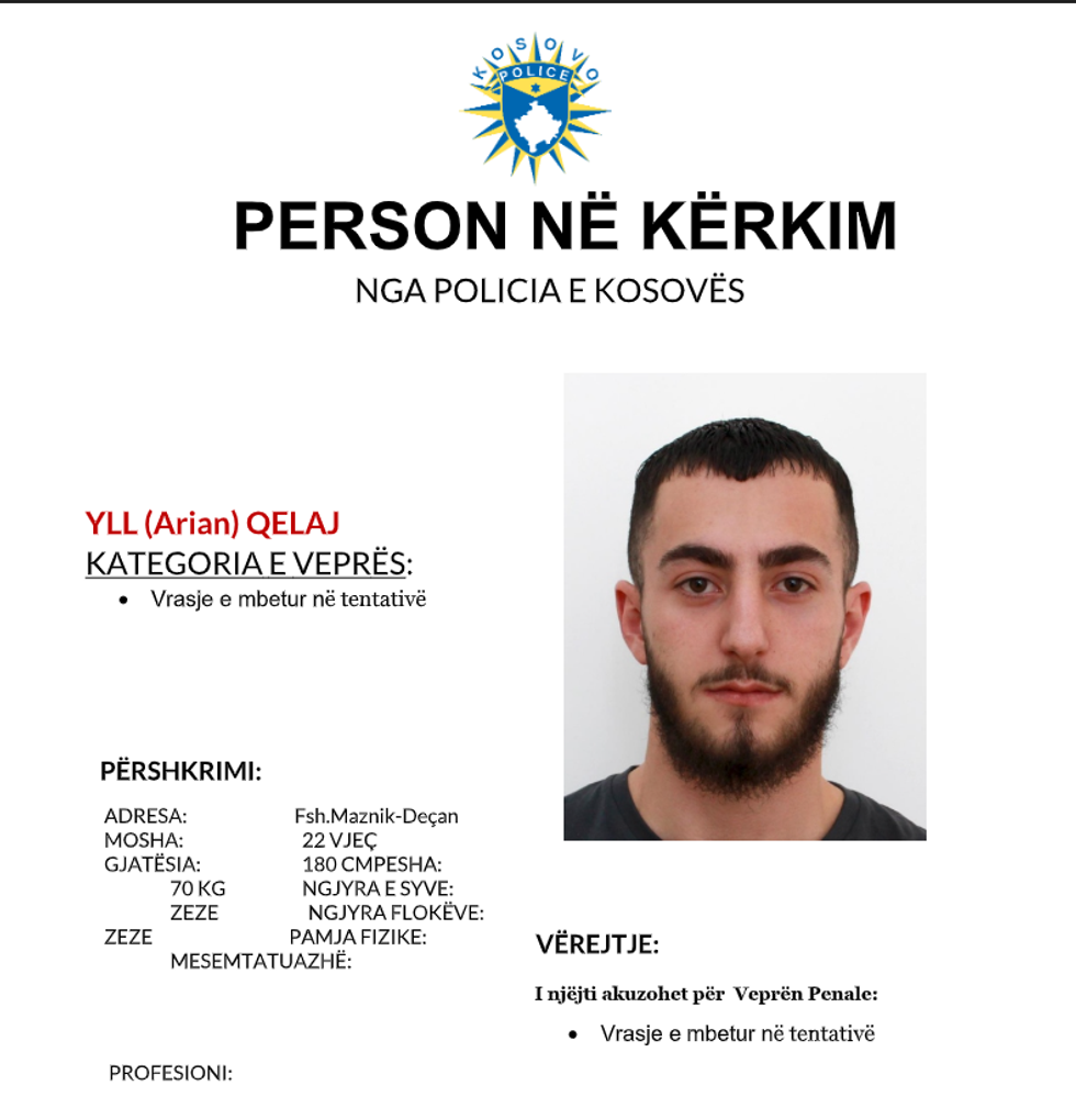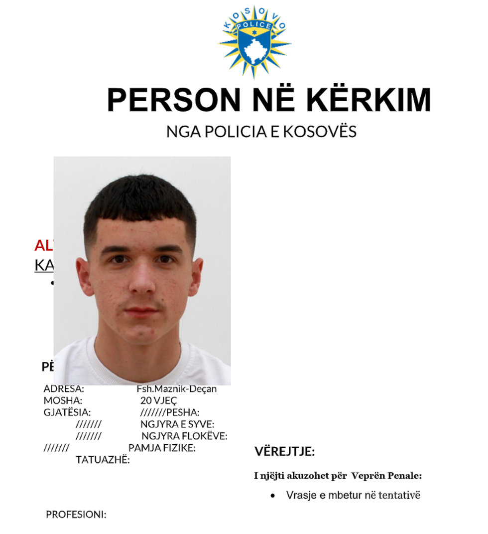 Tutje në njoftim thuhet se tё pandehurit kërkohen për veprën penale: Vrasje e mbetur në tentativë