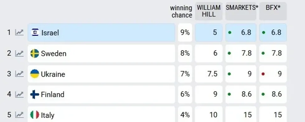 Siç është raportuar në faqen e Eurovision World, Izraeli aktualisht ka nëntë përqind shanse për të fituar konkursin e muzikës të lartpërmendur.