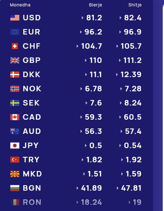 Më poshtë, po sjellim të dhënat e këmbimin valutor, për të gjitha monedhat e huaja: