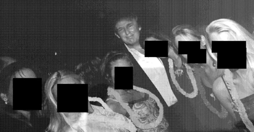 Një fotografi e tregon Trump të rrethuar nga gra me kostume banje, ndërsa e dyta duket të jetë një fotografi e njohur tashmë - pjesërisht e fshehur - e tij, gruas së tij Melania, Ghislaine Maxwell dhe Jeffrey Epstein, transmeton Telegrafi.