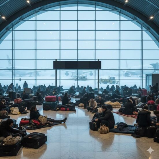 Mbi 1.000 pasagjerëve u është dashur të kalojnë natën në aeroport duke fjetur në dyshekë palosës, sikurse njofton aeroporti në faqen e vet të internetit.