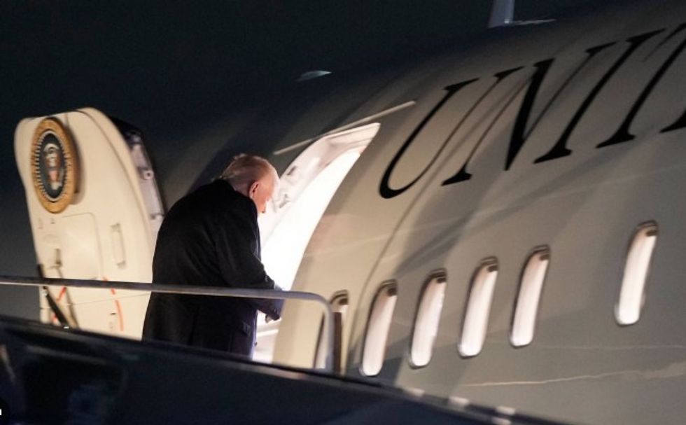 Trump më pas u zhvendos në një aeroplan tjetër, Air Force C-32, një Boeing 757 i modifikuar që ai zakonisht e përdor për udhëtime brenda vendit, dhe rreth mesnatës nisi sërish udhëtimin drejt Davosit, ku po mbahet Forumi Ekonomik Botëror.