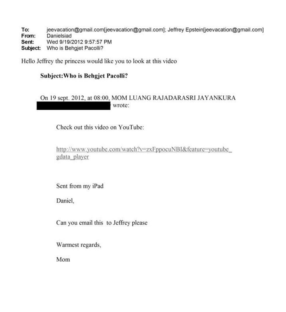 Jagland kishte vizituar ShqipĂ«rinĂ« edhe nĂ« maj tĂ« vitit 2012, ku kishte zhvilluar takime me krerĂ«t e lartĂ« tĂ« shtetit shqiptar. Sipas dokumenteve, gjatĂ« asaj vizite ai kishte vĂ«nĂ« re edhe njĂ« tjetĂ«r detaj, pĂ«r tĂ« cilin njĂ« ditĂ« mĂ« vonĂ« kishte komunikuar me Jeffrey Epsteinin pĂ«rmes emailit, duke e njoftuar se kishte qenĂ« nĂ« ShqipĂ«ri. NĂ« dokumentin qĂ« mban datĂ«n 25.maj. 2012 Jagland shkruan: âJeffrey, jo, nuk kam telefonuar ende. Kam qenĂ« nĂ« TiranĂ« (ShqipĂ«ri), vajza tĂ« mrekullueshmeâ.