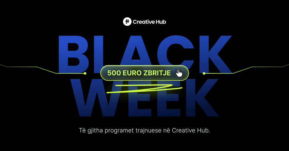 Creative Hub, një institucion udhëheqës në fushën e teknologjisë dhe zhvillimit të karrierës, njoftoi sot një promovim të paparë për Black Week, krijuar për të ulur në mënyrë drastike barrierat për profesionistët që kërkojnë të transformojnë karrierat në fushat më të kërkuara të Teknologjisë dhe Inteligjencës Artificiale (AI).