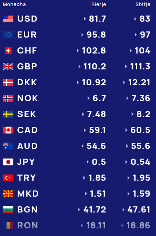 Më poshtë, po sjellim të dhënat e këmbimin valutor, për të gjitha monedhat e huaja: