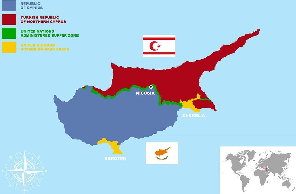 Ishulli i Qipros është i ndarë në një pjesë jugore të qeverisur nga grekët qipriotë dhe një pjesë veriore të qeverisur nga turqit qipriotë, të cilët shpallën në mënyrë të njëanshme pavarësinë në vitin 1983 dhe njihen vetëm nga Turqia.