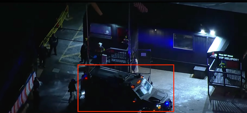Ata u ngritën nga pista e uljes së helikopterëve për t’u çuar në Qendrën Metropolitan të Paraburgimit, dhe u shoqëruan fillimisht nga oficerët në një SUV të zi pasi zbarkuan në Brooklyn. Këto momente mund të shihen nga minuta 36:45 e tutje.