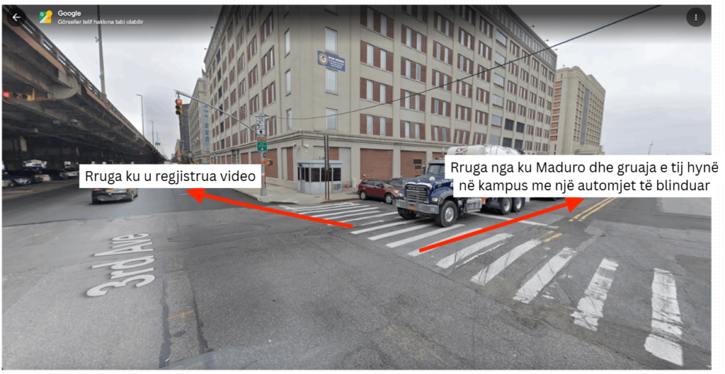 Kur gjurmojmë këto ndalesa, duket se video në fjalë është regjistruar në 3rd Ave, ku ndodhet Qendra e Paraburgimit Metropolitan. Megjithatë, Maduro dhe gruaja e tij hyjnë në kampusin e Qendrës së Paraburgimit Metropolitan pa u kthyer kurrë në këtë rrugë.