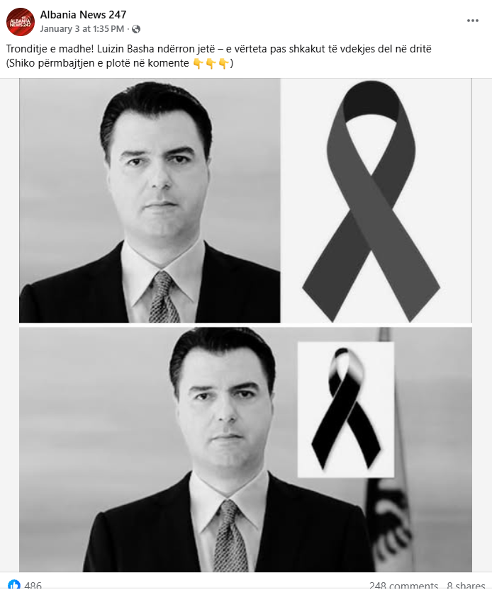 Megjithatë, lexuesit nuk duhet të alarmohen. Ky lajm është i rremë. Nuk ka ndonjë njoftim zyrtar nga familja e Bashës për humbje jete.