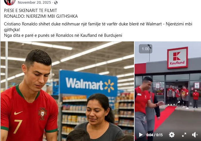 Pretendimi: Kjo video tregon futbollisitin Cristiano Ronaldo duke punuar në një supermarket Kaufland