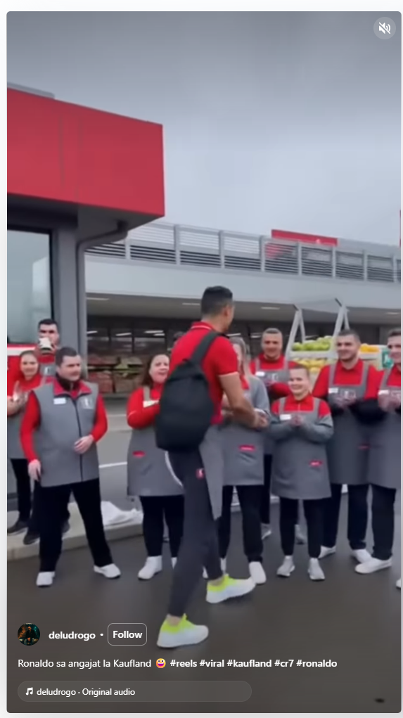 Një video që duket se tregon futbollistin portugez Cristiano Ronaldo në “ditën e parë të punës në Kaufland,” një rrjet supermarketesh gjerman.