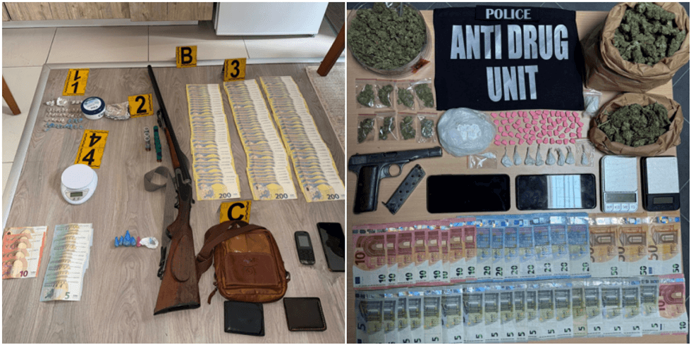 Po ashtu, gjatë bastisjes në një banesë tjetër të lidhur me rastin, policia ka konfiskuar 52 paketime me substancë të dyshuar heroinë, me peshë totale 14 gramë, një pushkë gjuetie me nëntë fishekë, para të gatshme në vlerë rreth 25 mijë euro, një veturë, një peshore, dy telefona mobilë dhe prova të tjera materiale.