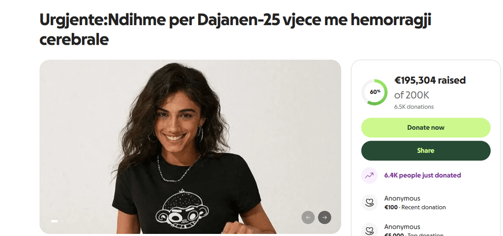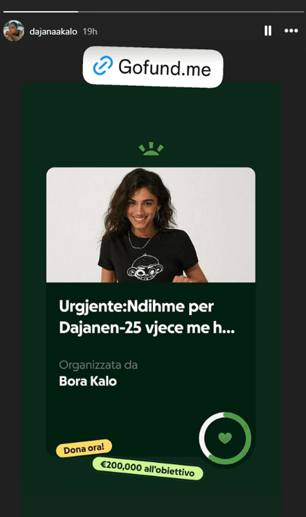 Mbështetësit mund të kontribuojnë dhe të ndajnë fushatën për të ndihmuar Dajanën të kalojë këtë moment kritik.