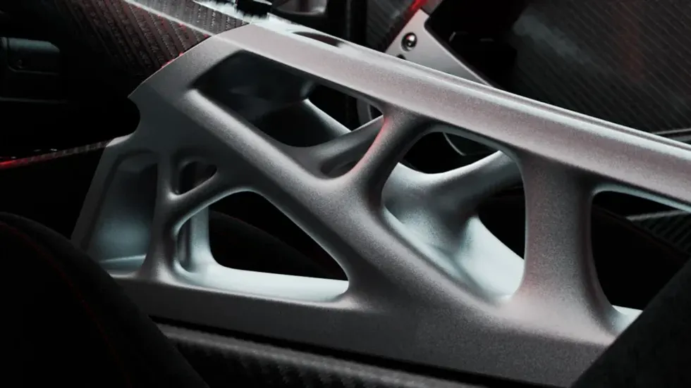 ĂshtĂ« ndĂ«rtuar nga fibra karboni dhe alumini, tĂ« cilat mund tâi shihni fjalĂ« pĂ«r fjalĂ«, sepse âstrukturat qĂ« mbajnĂ« ngarkesĂ« mbeten plotĂ«sisht tĂ« dukshmeâ.