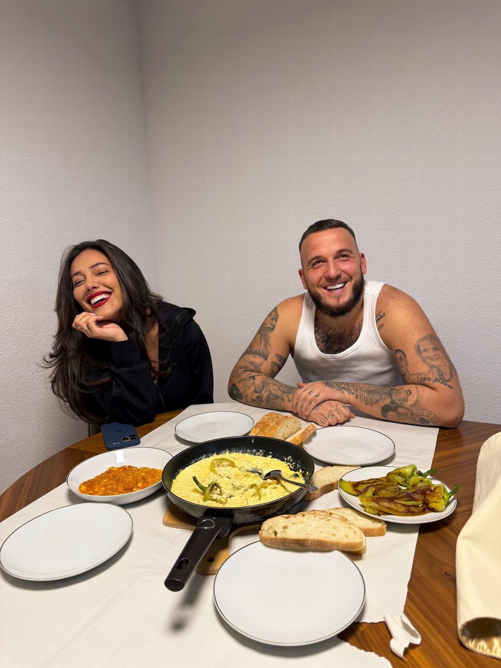 Në një postim në Instagram, ku shfaqen të ulur përpara një darke me ushqime tradicionale, por plot dashuri, Mozzik ka shoqëruar foton me një mbishkrim emocional.