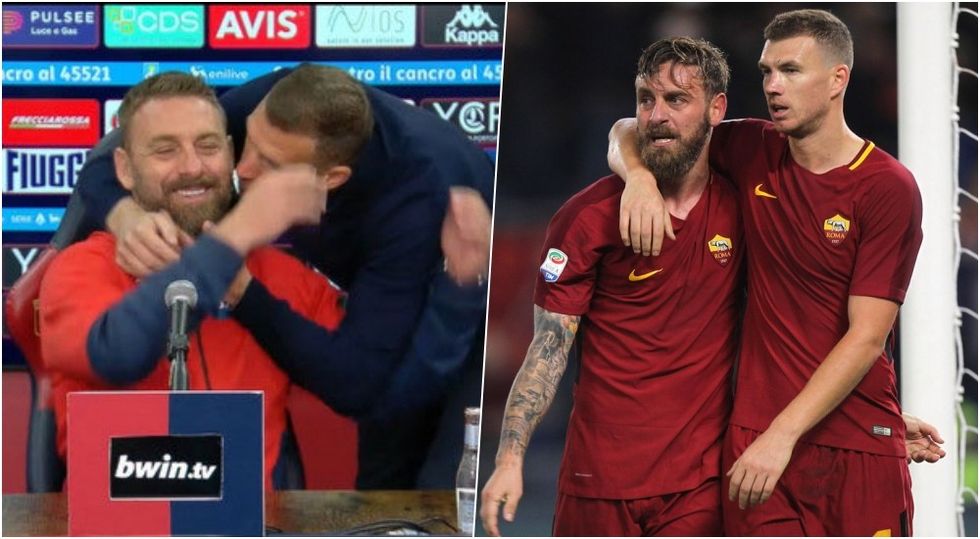 Dzeko, i cili u rikthye në lojë në minutat e fundit të takimit, u shfaq në sallën e konferencës për të përshëndetur mikun e tij të vjetër De Rossin, ku dyshja janë miq të mirë nga koha kur luanin te Roma.