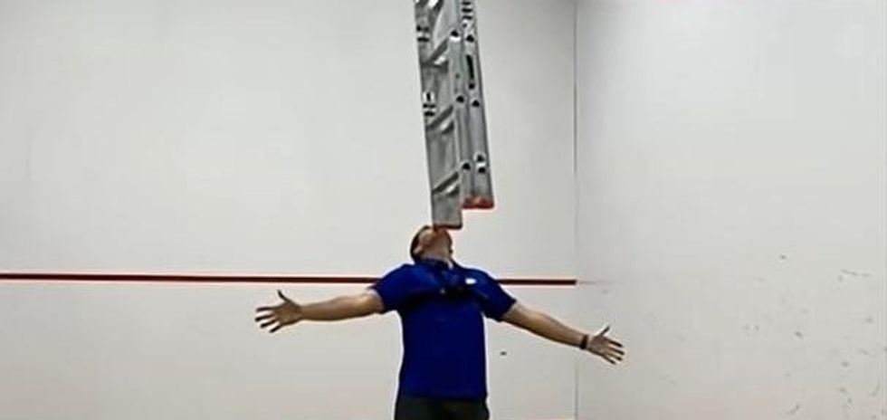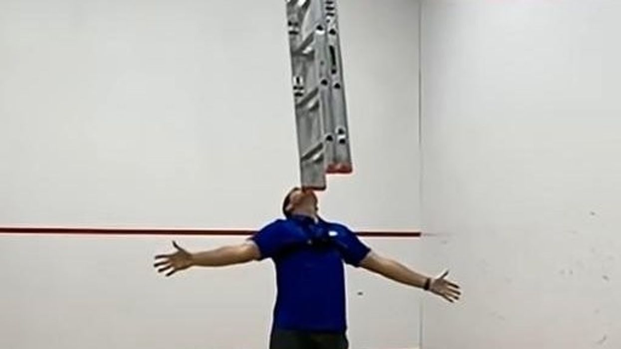 Rekordi i tij i madh Guinness, David Rush, e balancoi një shkallë në mjekër për 19 minuta e 11 sekonda, duke rimarrë një nga titujt e tij më të hershëm.