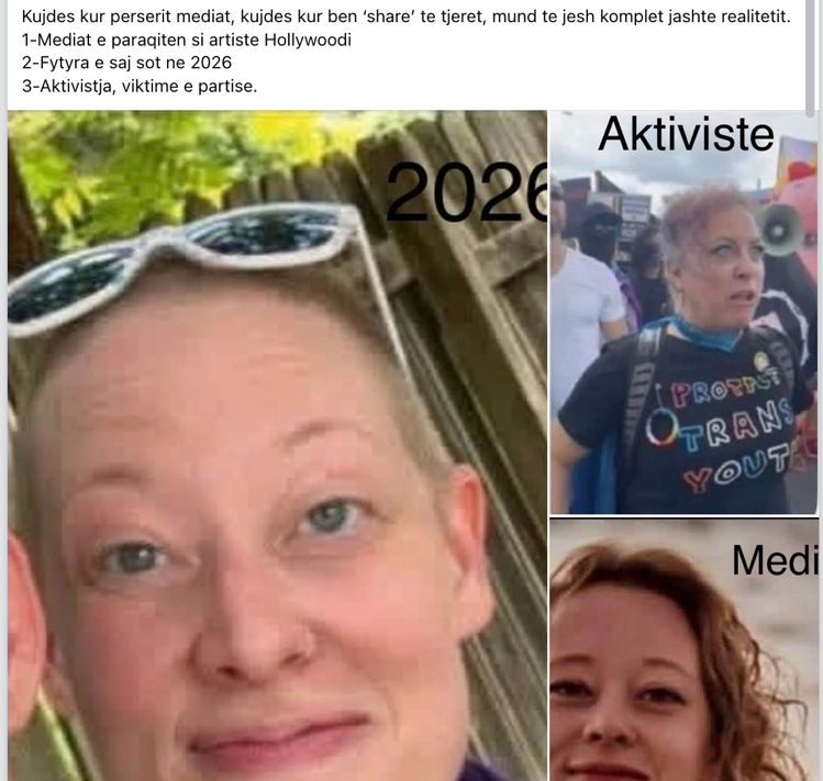 Në rrjetet sociale shqiptare po qarkullonë postime sipas të cilës Renée Nicole Good, gruaja e vrarë nga një agjent i ICE (Forca për Zbatimin e Rregullave të Imigracionit dhe Doganave në SHBA) në Minneapolis me datë 7 janar 2026, ishte një aktiviste e paguar. Këto pretendime përdorin fotografi të personave të ndryshëm për të pretenduar se Good është gjendur dhe në protesta të tjera në të shkuarën, duke u përpjekur ta portretizojnë atë si një person të dhunshëm.