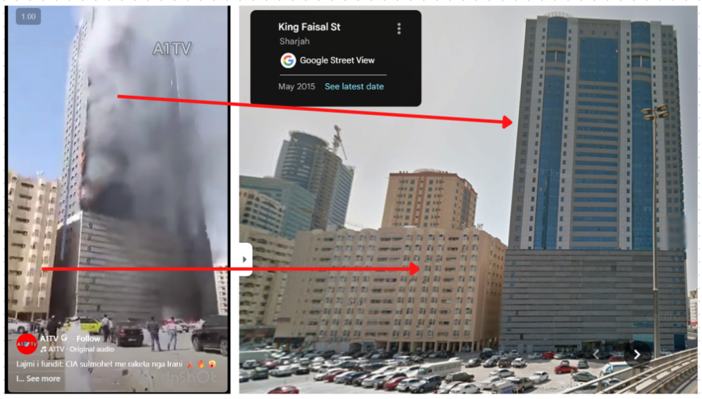 Krahasim i videos së pretenduar në Dubai (majtas) dhe pamje nga Sharjah (djathtas) tregon se kemi të bëjmë me të njejtin vend