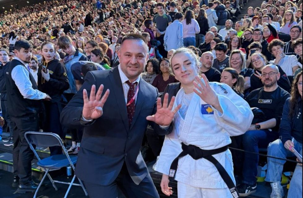 Trajneri Driton Kuka e ka uruar xhudisten Distria Krasniqi që e fitoi medaljen e artë në Grand Slam të Parisit.