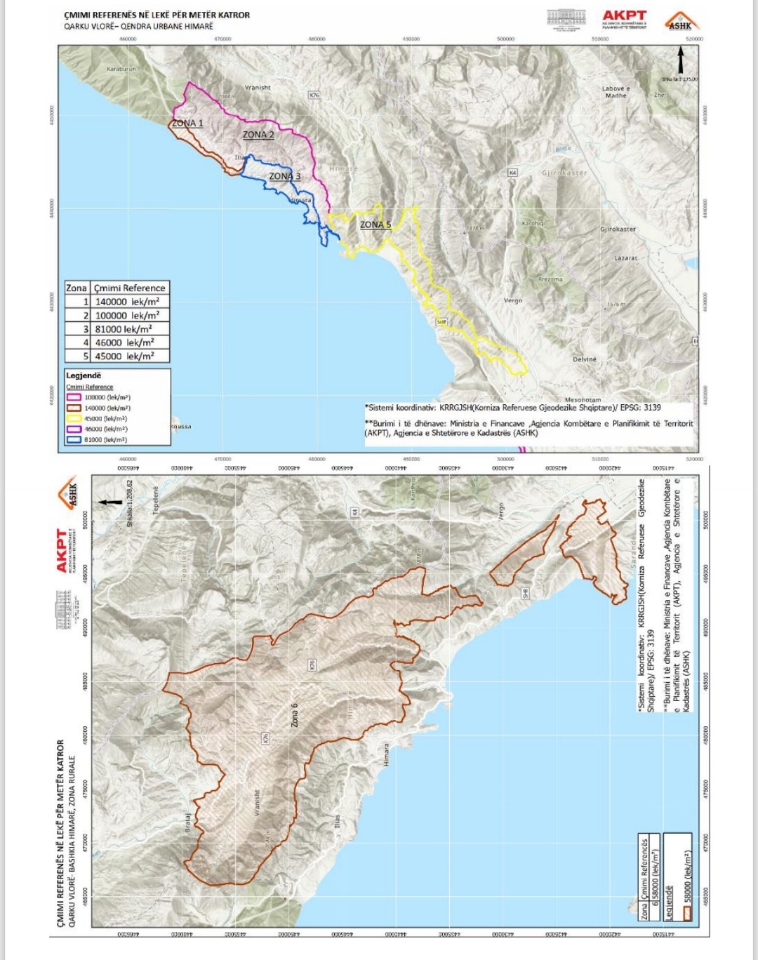 Referuar hartave, zona 3 kadastrale që në terren përfshin Himarën qytet, fshatrat Potam dhe Livavadh çmimi i propozuar do të jetë 81 mijë lekë për metër katror.