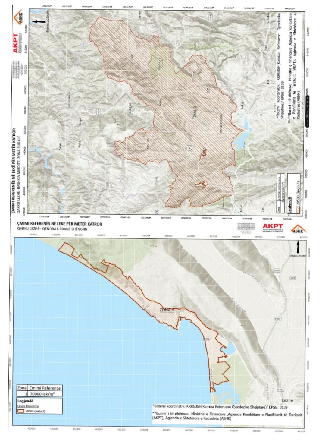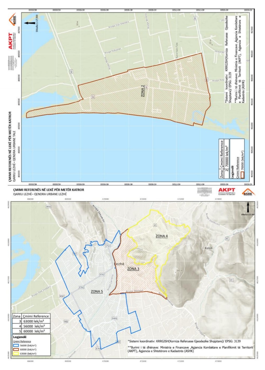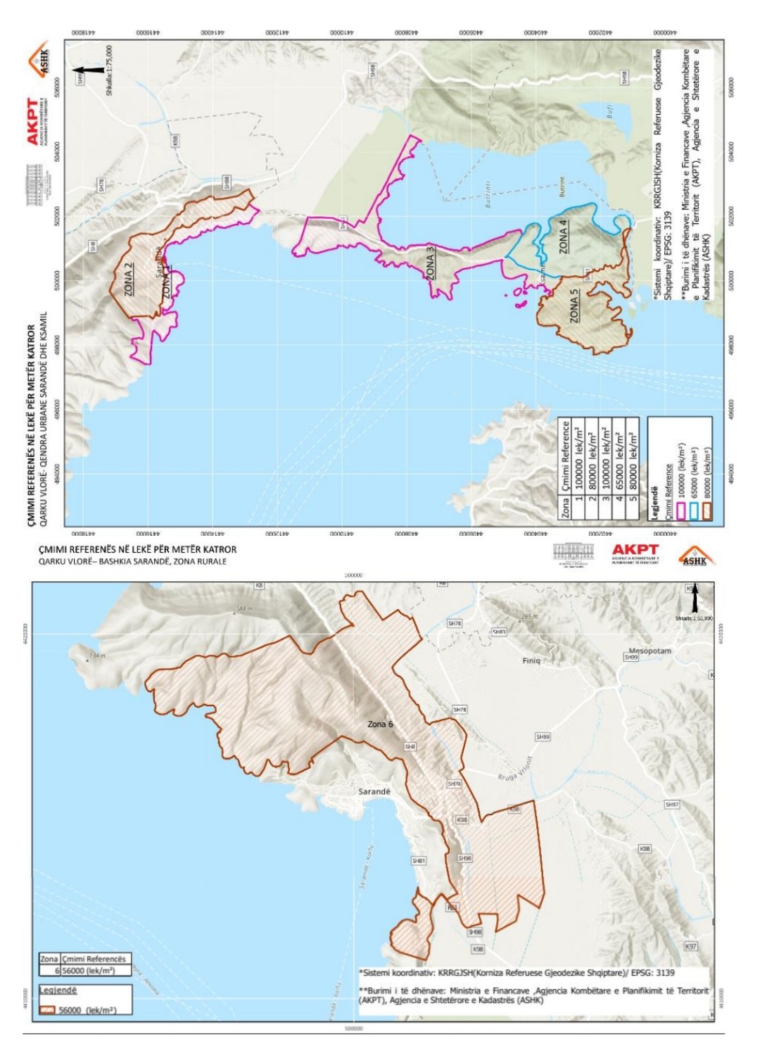 Në Sarandë fshati më i shtrenjtë do jetë Ksamili, çmimet e referencës do të jenë 100 mijë lekë/m2. Në Vlorë, çmimet e referencës për vijën bregdetare të fshatrave Radhimë dhe Orikum do të jenë 90 mijë lekë/m2 që përbëjnë dhe zonat më të shtrenjta rurale të bashkisë Vlorë. Në Velipojë çmimi i referencës do të jetë 75 mijë lekë për metër katror dhe në Tale të Lezhës 70 mijë lekë për metër katror.